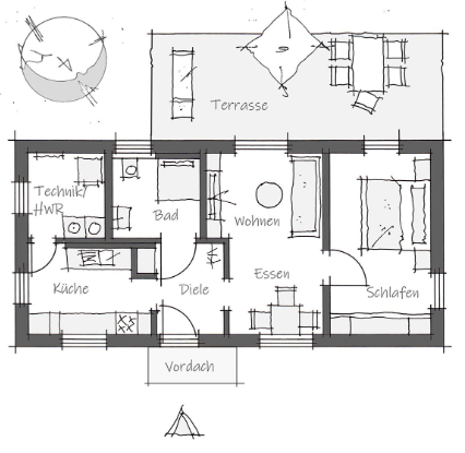 55,39 m² Nutzfläche • Abmessung aussen 12,25 m x 5,90 m